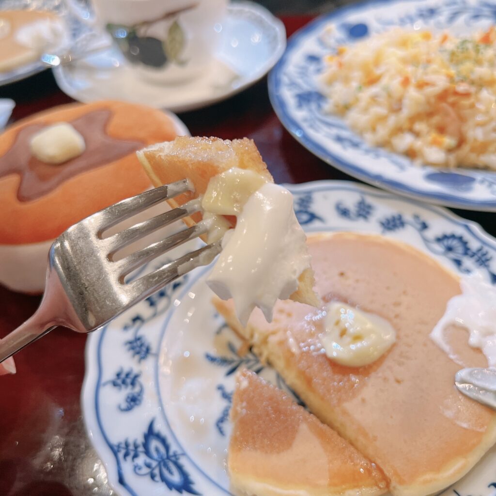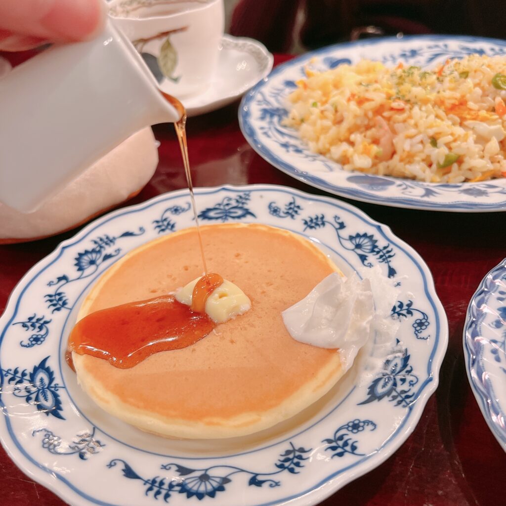 名称ではパンケーキ→英語の『パンケーキ』からきた言葉/海外由来のお食事寄り。