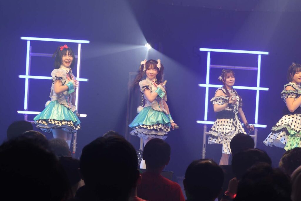 暗転し朝倉ゆりがステージを降り、色葉みみと城咲まりあが加わり、3rd seasonの7名でスマイルマイレージをパフォーマンス。